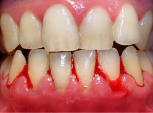 이 사진은 양치를 한 직후 환자분의 잇몸모습입니다. 피가 나고 있죠. 과연 왜 양치질을 하면 피가나는걸까요? (출처: https://www.braddondental.com.au/)