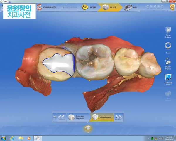다음으로 치과의사는 특수 컴퓨터 소프트웨어를 사용하여 인레이를 디자인합니다.