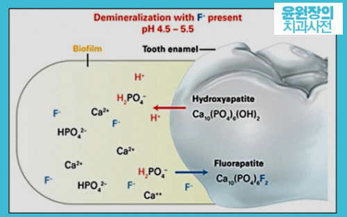 정리하자면 불소는 치아표면 법랑질의 재광화를 유도합니다.