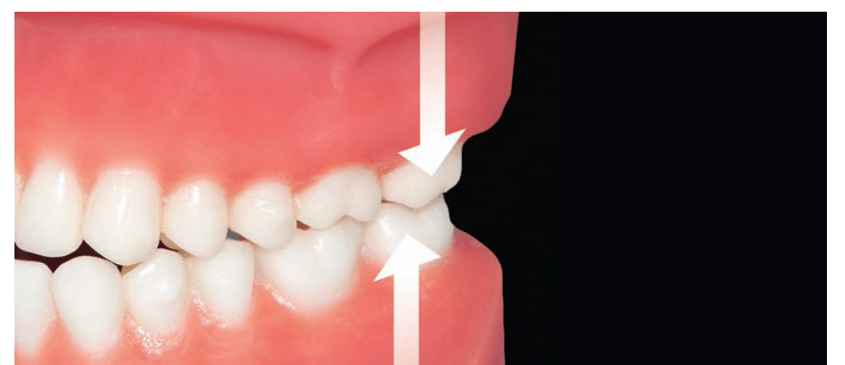사진처럼 씹는 힘이 강하거나 이를 꽉 무는 습관이 있는 경우, 인레이가 망가질 확률이 올라갑니다(출처: https://dimensionsofdentalhygiene.com)