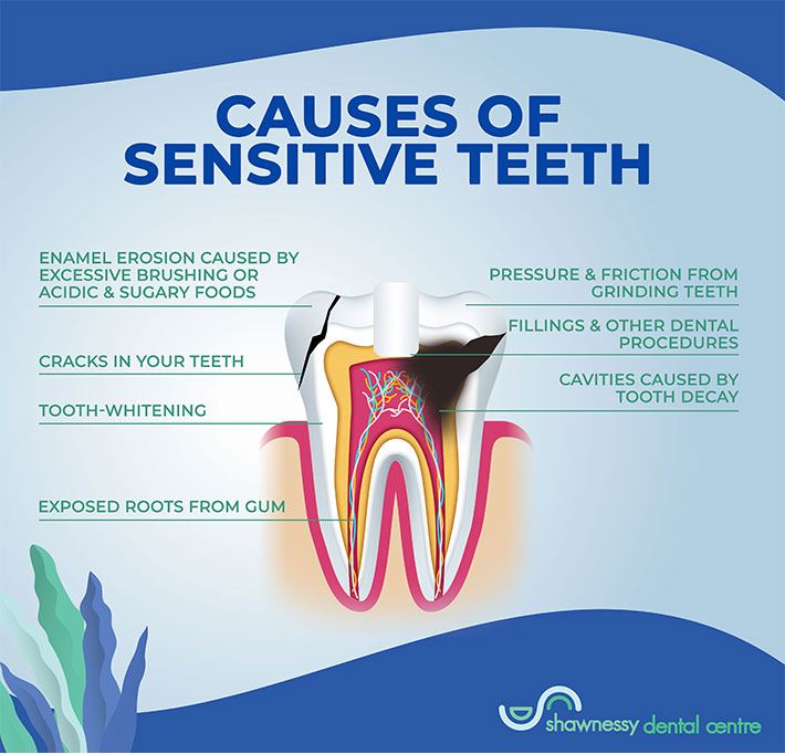 치아가 시릴 수 있는 다양한 원인들을 나타낸 그림입니다. (출처: https://shawnessydental.com/)