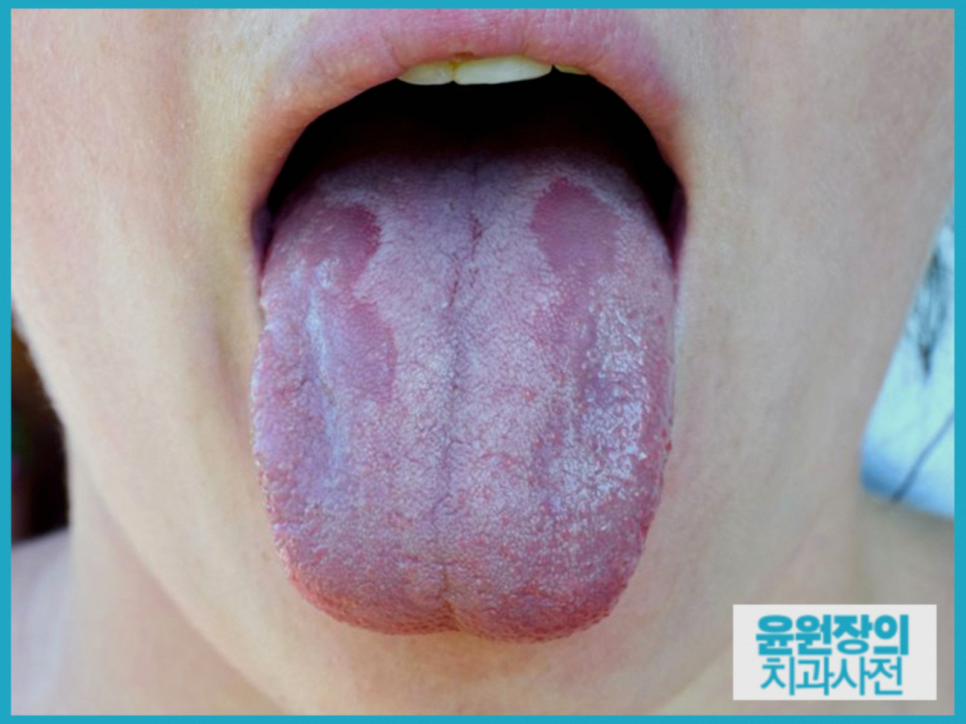 근데 칸디다증은 한가지 특징이 있습니다. 혀가 전체적으로 하얗거나 붉게 변합니다.